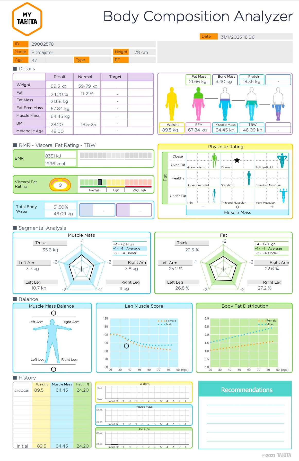 Natančna analiza sestave telesa s profesionalno Tanita napravo za optimalno spremljanje napredka.